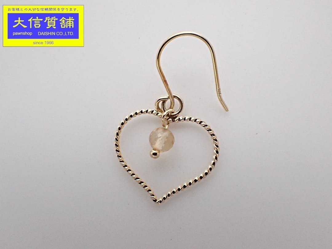 > K14 イエローゴールド クォーツ フックピアス ハート 0.26g 片耳用 シングルユース 中古A- 【送料無料】 C-9170