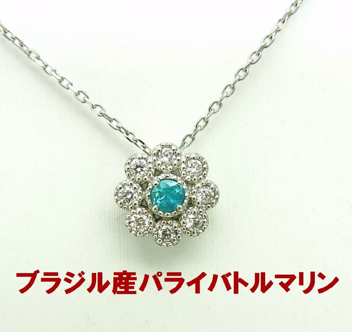 > ギラギラネオンブルー ブラジル産パライバトルマリン0.04ct ダイヤ取巻プラチナペンダントネックレス 動画あり 送料込