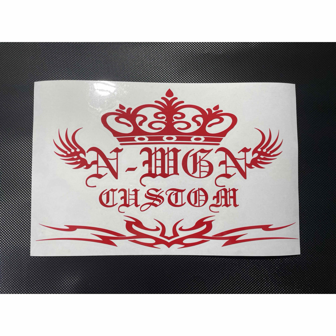 - 車種名変更可 Nワゴン カスタム 王冠 羽 トライバル ステッカー カッティングステッカー 転写 赤色