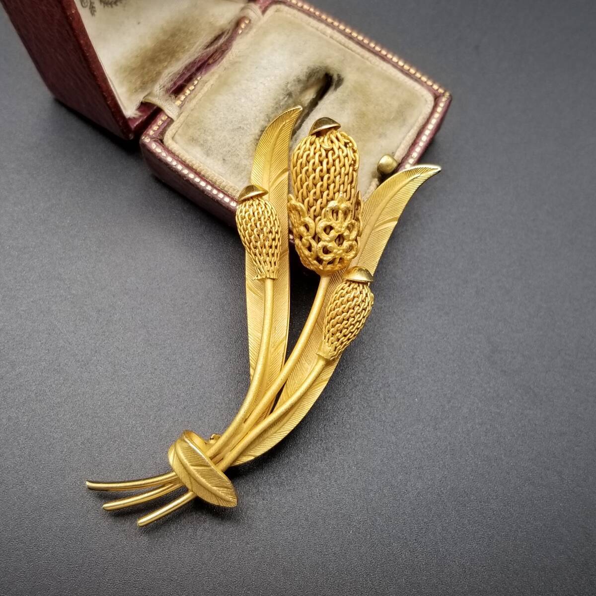 - 小麦 植物 モチーフ 立体 ヴィンテージ フラワー ブローチ マットゴールドトーン 花束 上品 エレガント 自然派 Y17-V