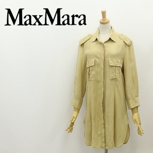 - 白タグ◆Max Mara マックスマーラ リネン100% チュニック シャツ ワンピース ベージュ 42