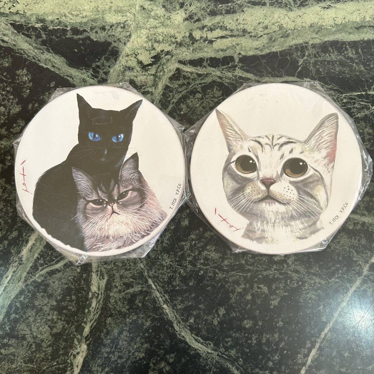 > 【未使用品】糸井忠晴★アートフレーム2枚セット 猫 ウッドパネル アートパネル 壁掛けインテリア 円盤 絵画 ②