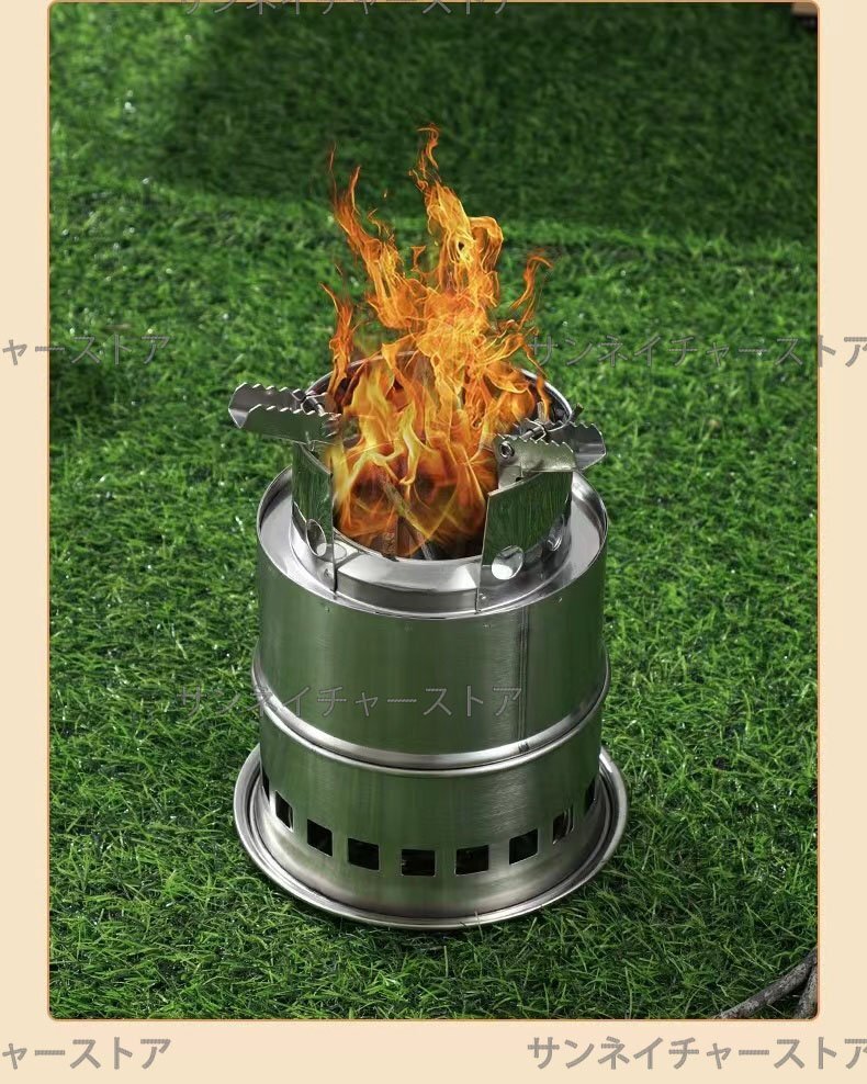- ウッドストーブ キャンプストーブ 焚き火コンロ 二次燃焼 ソロキャンプ アウトドア 組み立て式 収納袋付 ゴトク付き