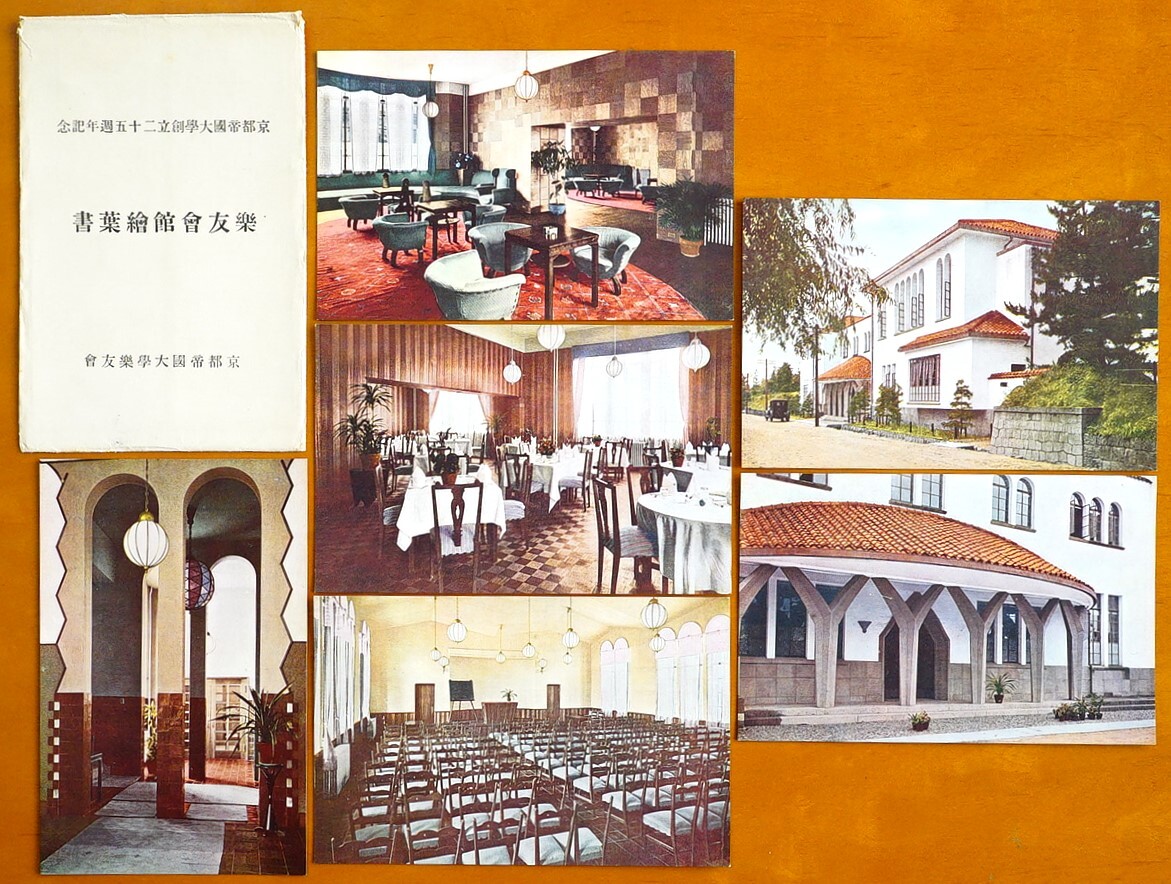 - 京大楽友会館絵葉書6枚 京都帝国大学創立二十五週年記念 京都帝国大学楽友会発行 大正14年 紙袋付 検:京都大学吉田南構内 全景 食堂 ホール