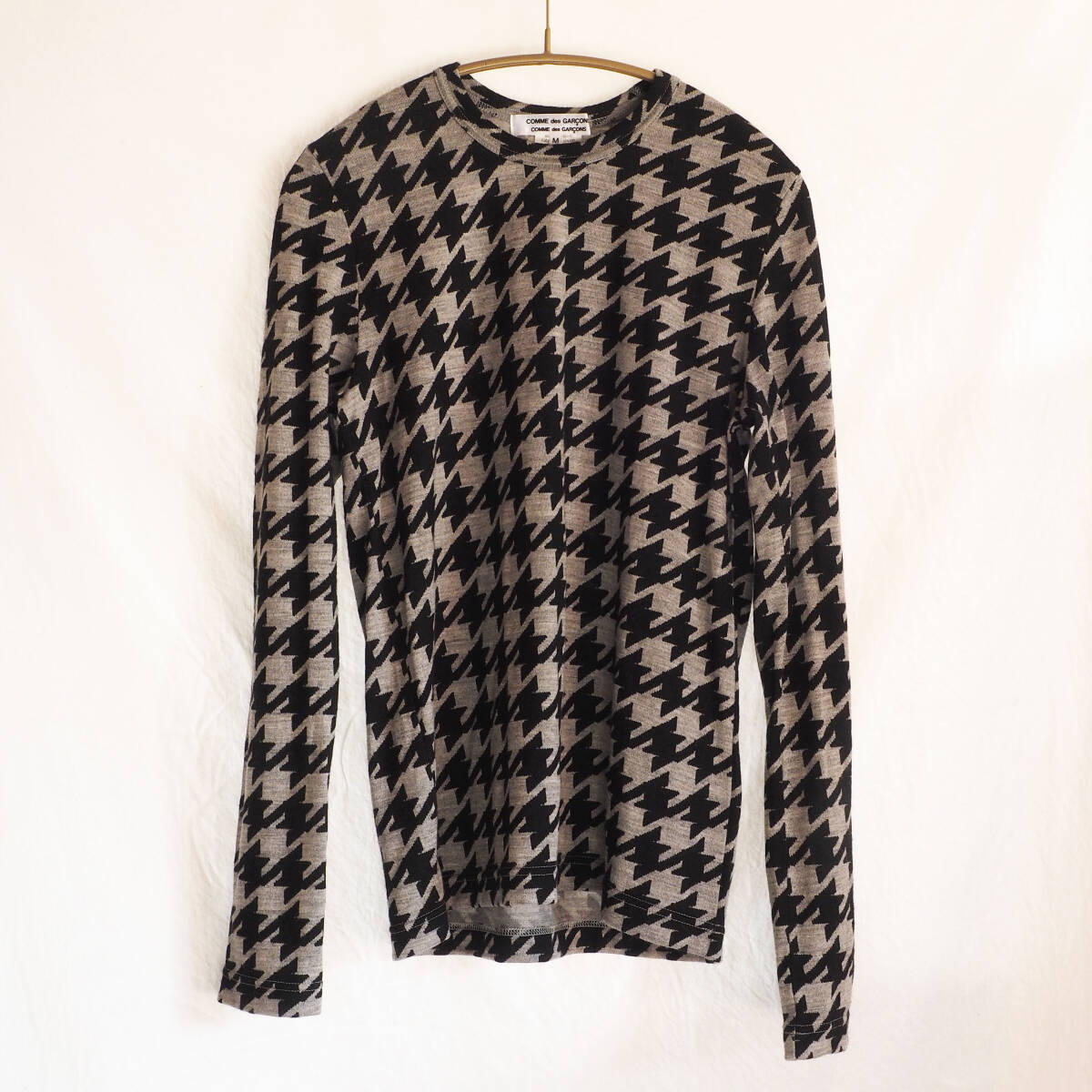 > 美品 コムコム M 千鳥格子 ウール セーター 黒 ブラック コムデギャルソン 定番 秋冬 ニット