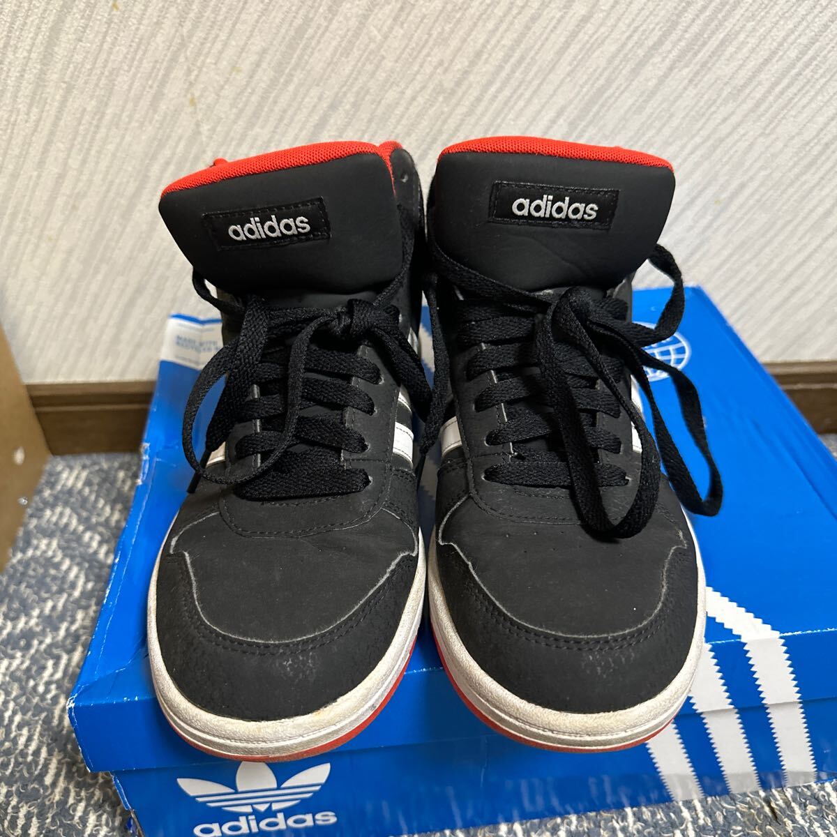 > ★ アディダス スニーカー ブラック addidas 25cm ハイ ADIHOOPS MID 2.0 ホワイトライン 赤 レッド