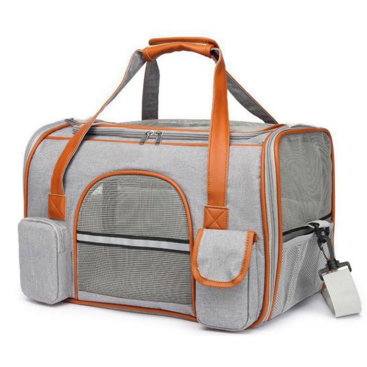 - ペットキャリーバッグ 軽量 猫 犬 ウサギ 外出 キャリーバッグ 小型 お出かけ 旅行 通院 キャンプ 50*30*30cm ライトグレー