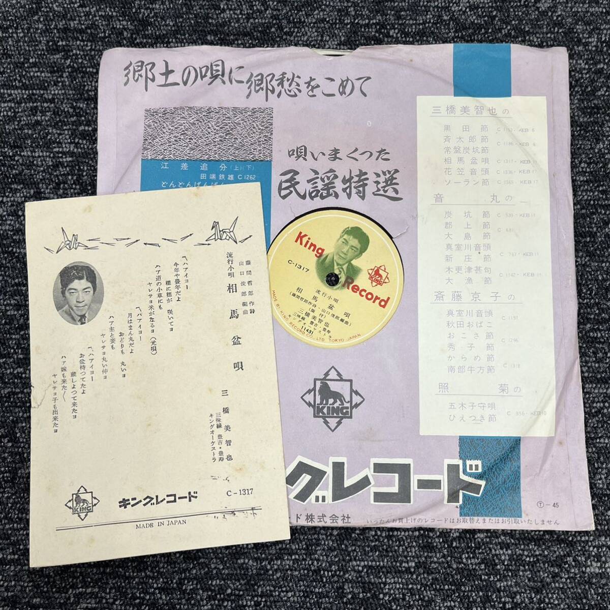 - SP盤 レコード / 相馬盆唄 - 三橋美智也 / 秩父音頭 - 照菊 / 歌詞カード付き C-1317 KW104