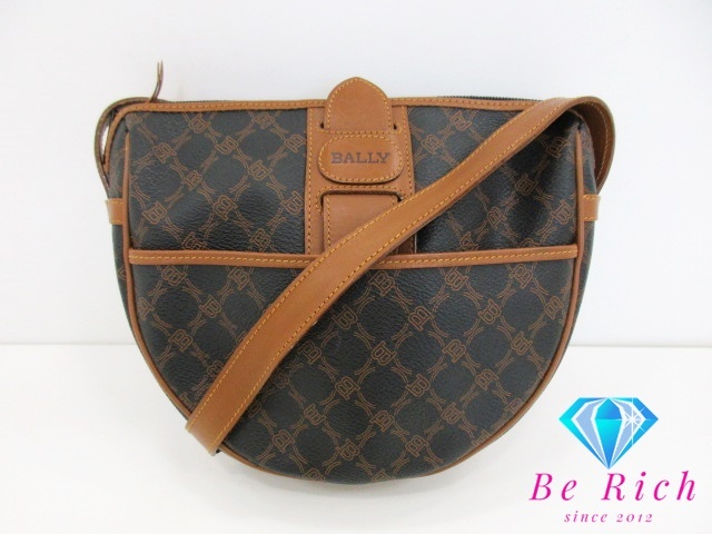 > バリー BALLY ショルダーバッグ 黒 ブラック 茶 ブラウン PVC レザー ロゴ 総柄 ポシェット 肩掛け 鞄【中古】bk8628