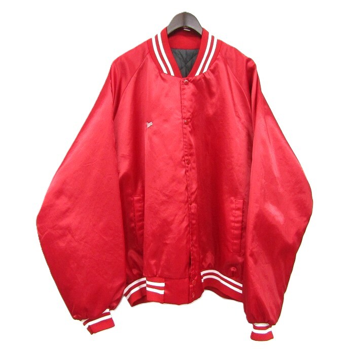 - ビックサイズ スタジアム ジャンパー スタジャン ナイロン ジャケット 無地 ワンポイント 刺繍 レッド 古着 ビンテージ 4JU2102