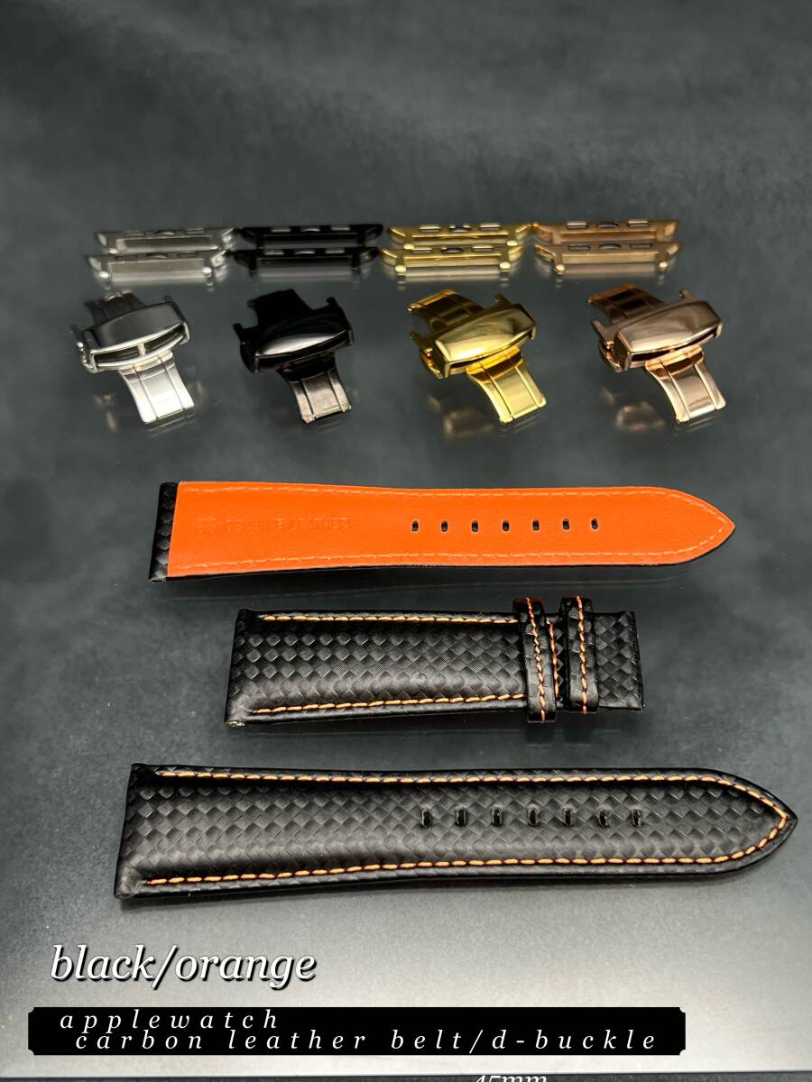 - ブラック/オレンジ アップルウォッチ applewatch カーボン レザー ベルト バンド 46mm 41mm 45mm 49mm 40mm 44mm ウルトラ ストラップ