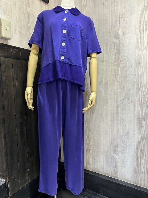 - USA製 90s FROXX 異素材 切り替え シェルボタン ブラウス シャツ イージー パンツ 2pcs セットアップ ユニセックス
