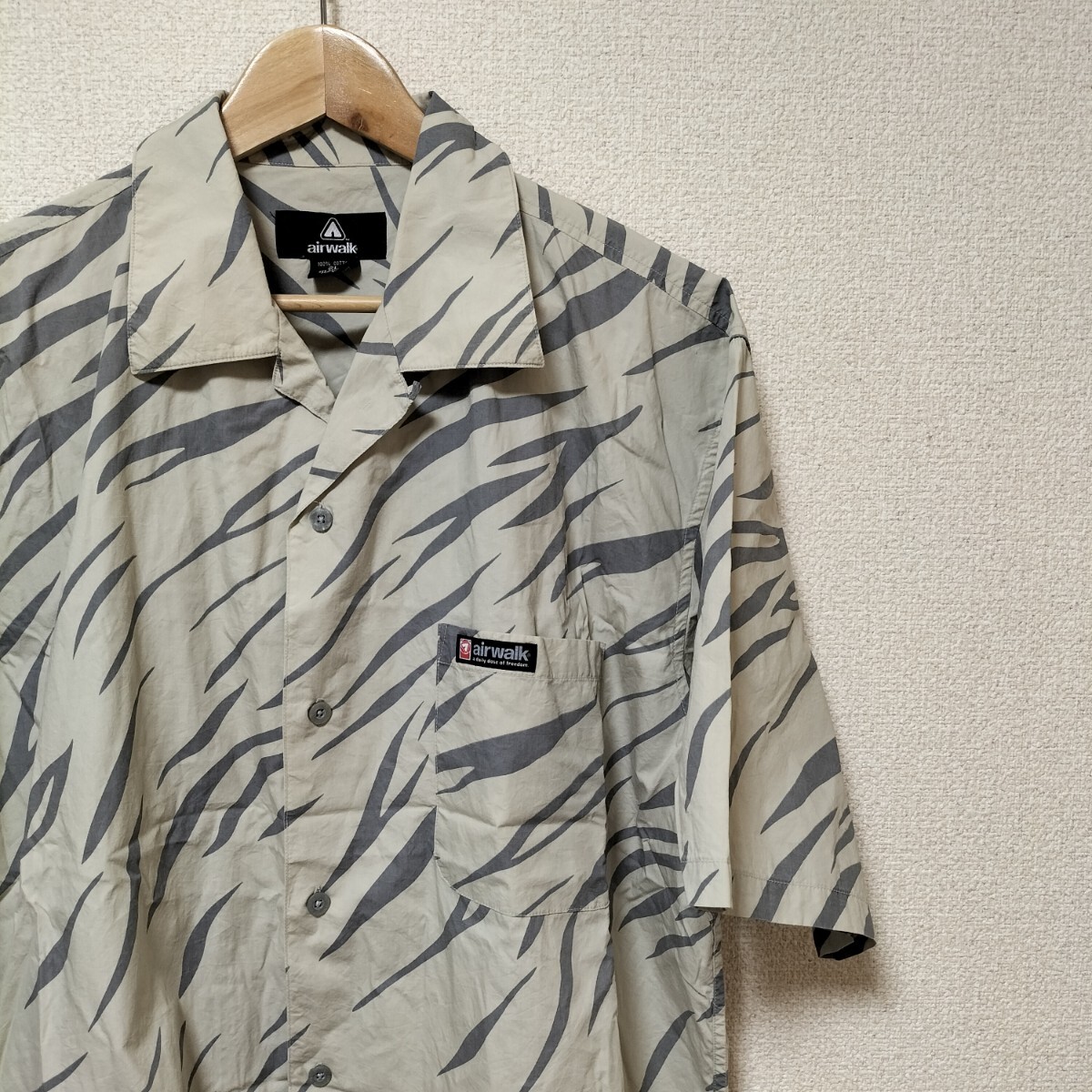 - 美品☆90s AIRWALK 半袖シャツ オープンカラー 開襟 虎 ゼブラ 総柄 左胸ポケット オフホワイト メンズXL オールド エアウォーク 古着 USED
