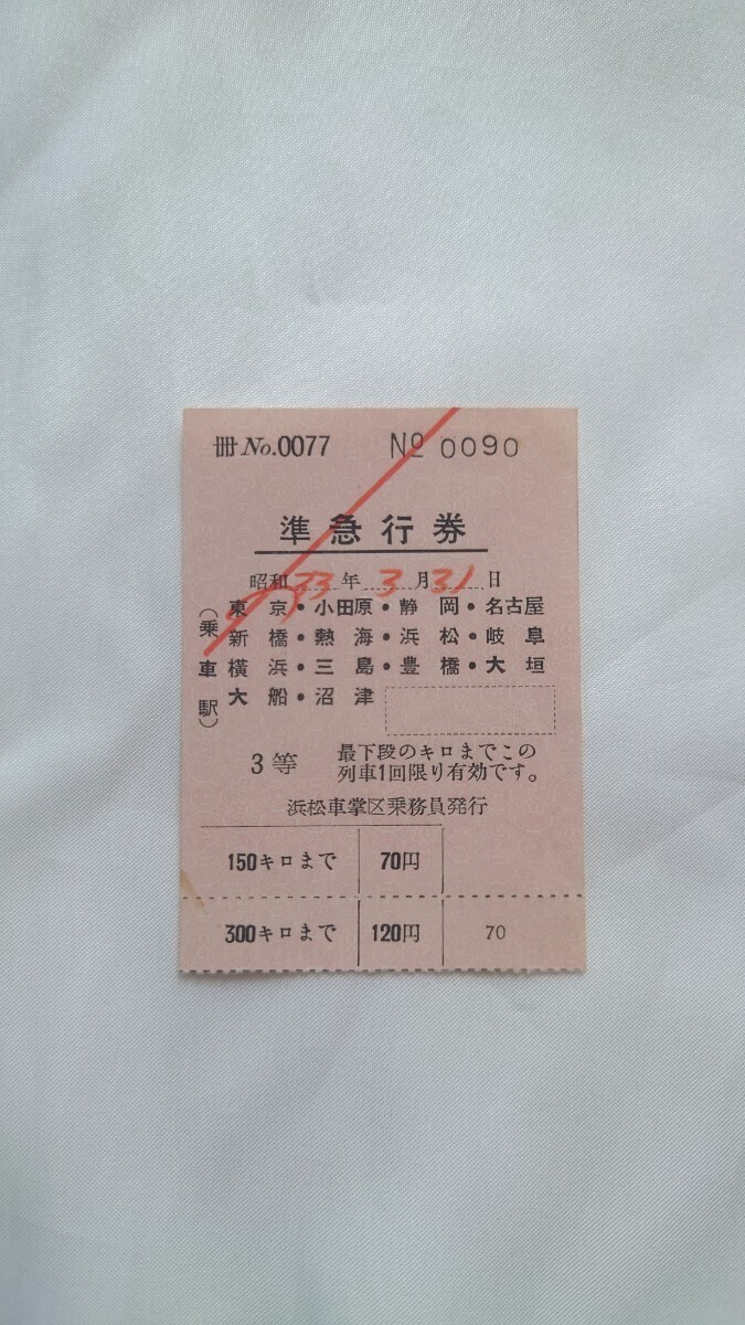 - ▼国鉄浜松車掌区発行▼準急行券3等▼軟券昭和33年