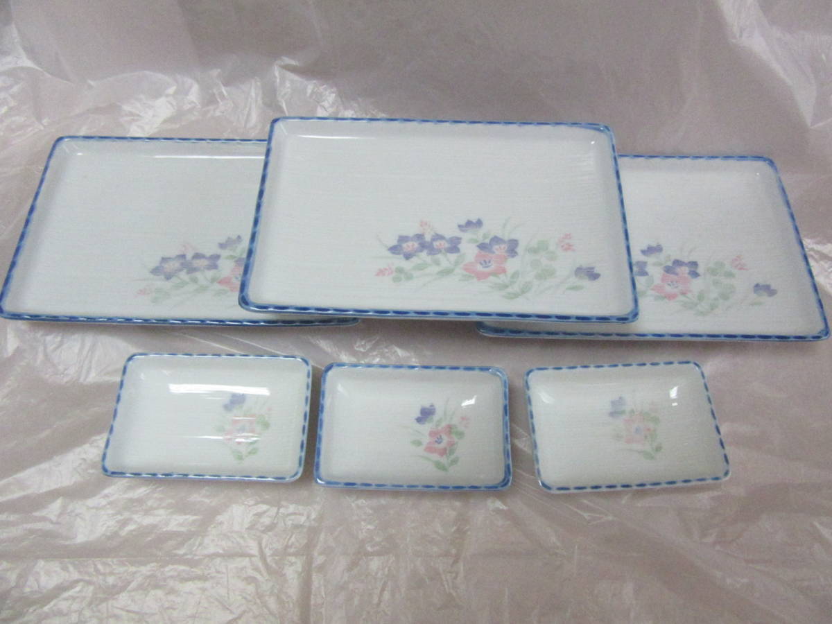 - ★ レトロ柄 桔梗柄 角皿 大小各3枚ずつ 陶器 ★