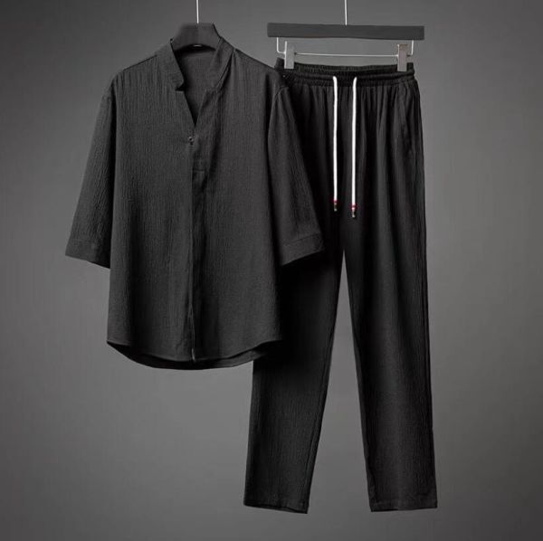 - 人気推薦 Tシャツ ロングパンツ パンツ メンズ ルームウェア 部屋着 涼しいセットアップ 上下セット / M-3XLサイズ選択可 ブラック