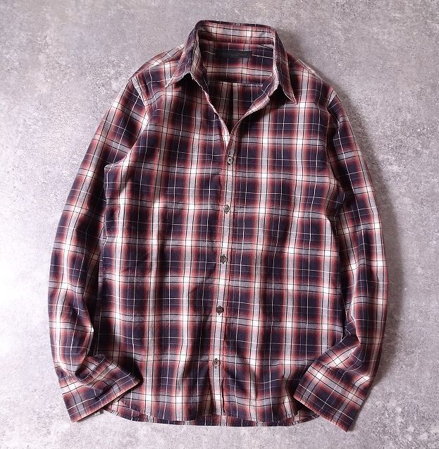 > LOUNGE LIZARD ラウンジリザード オンブレチェック シャツ 長袖 コットン ラメ メンズ (2) 黒/オレンジ系 ●r-209