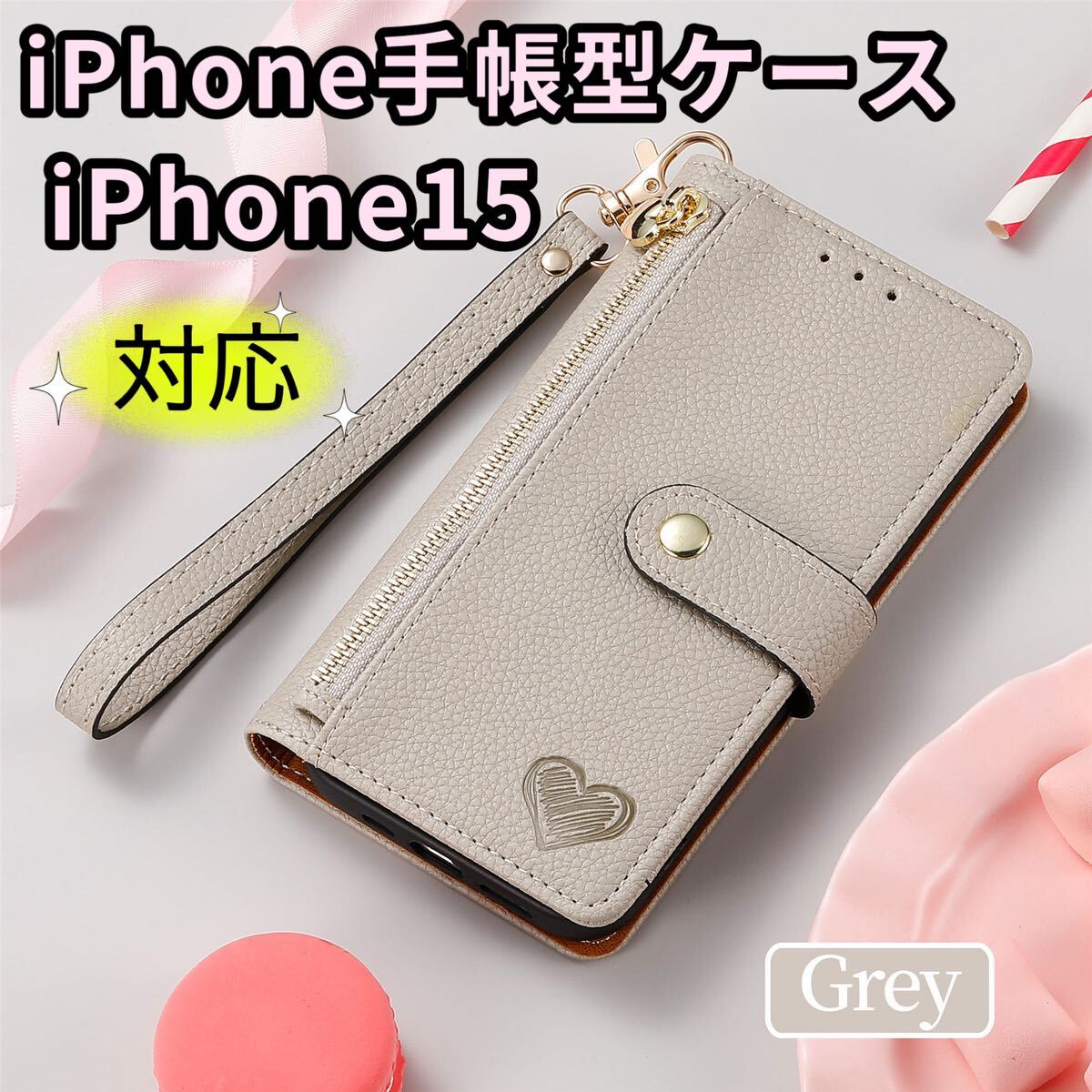 > iPhone15対応 iPhone手帳型ケース iPhone15スマホケース 可愛いiPhoneケース マグネット式 グレー