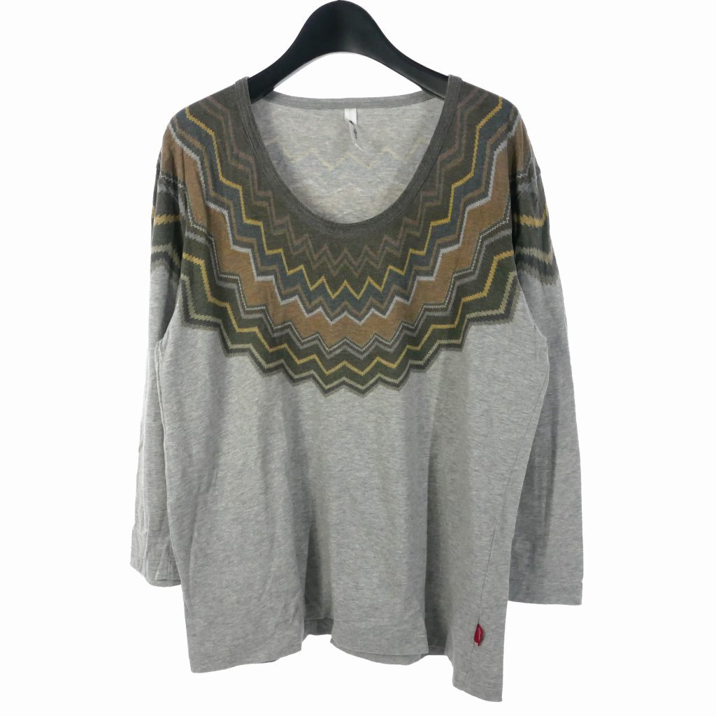 > グラム glamb Tシャツ カットソー 長袖 Uネック 7分袖 柄プリント 2 グレー メンズ