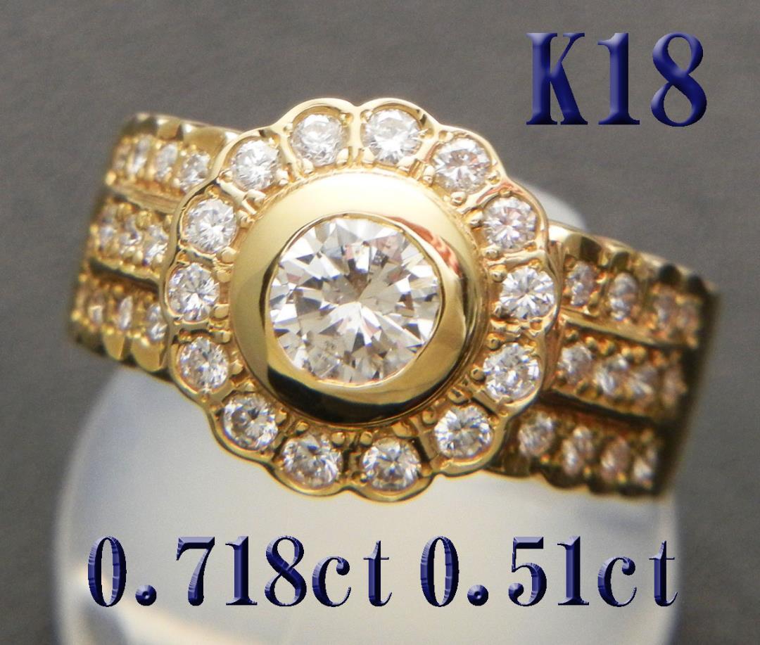 - 新品★K18 豪華なダイヤ 0.7ct 0.5ct リング◆鑑別付き