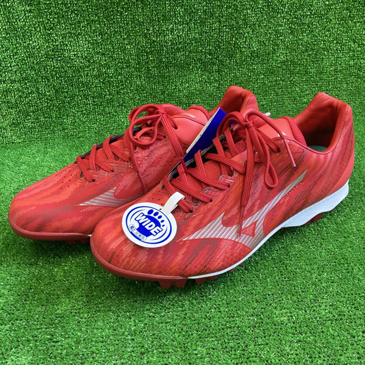 > 48 ミズノ ポイントスパイク レッド×シルバー 27.5cm 11GP242561 3E ウェーブライトレボ 新品