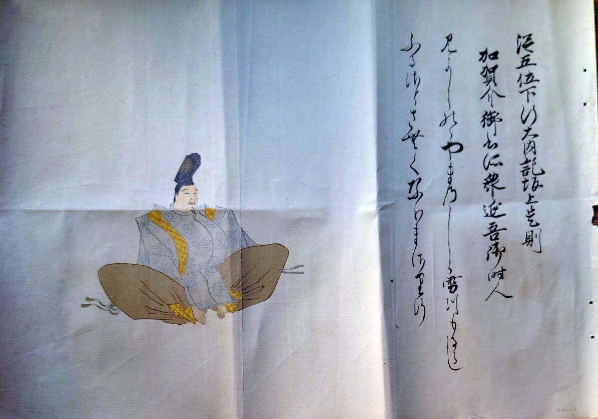 - f24080404〇印刷 絵画 佐竹本 三十六歌仙 坂上是則 みよしのの 山の白雪 つもるらし ふるさとさむく なりまさるなり 昭和時代〇和本