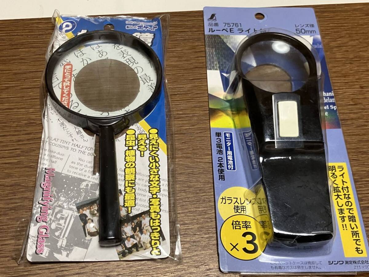 - シンワ測定(株)ガラスレンズ使用ライト付きハンドルーペ 暮らしのポケット ハンドルーペ 拡大鏡 2点セット 中古品