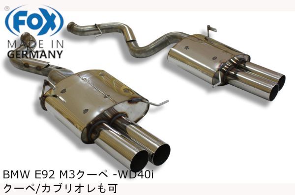 > ヨーロッパ製 FOX フォックス リアマフラー BMW E92 M3 クーペ 4.0L 用 BM023064-011 テール 90mm カットオフダブル 左右 車検対応 eマーク