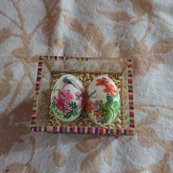 - 【卵絵 花鳥】2個 中国製 昭和レトロ