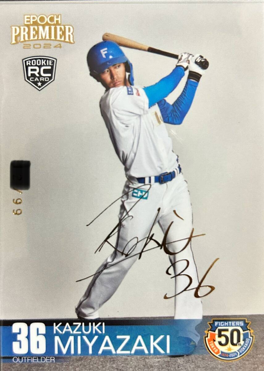 - 2024エポック 日本ハムPREMIER EDITION RC宮崎一樹選手ゴールドプリントサイン99枚シリアルカード
