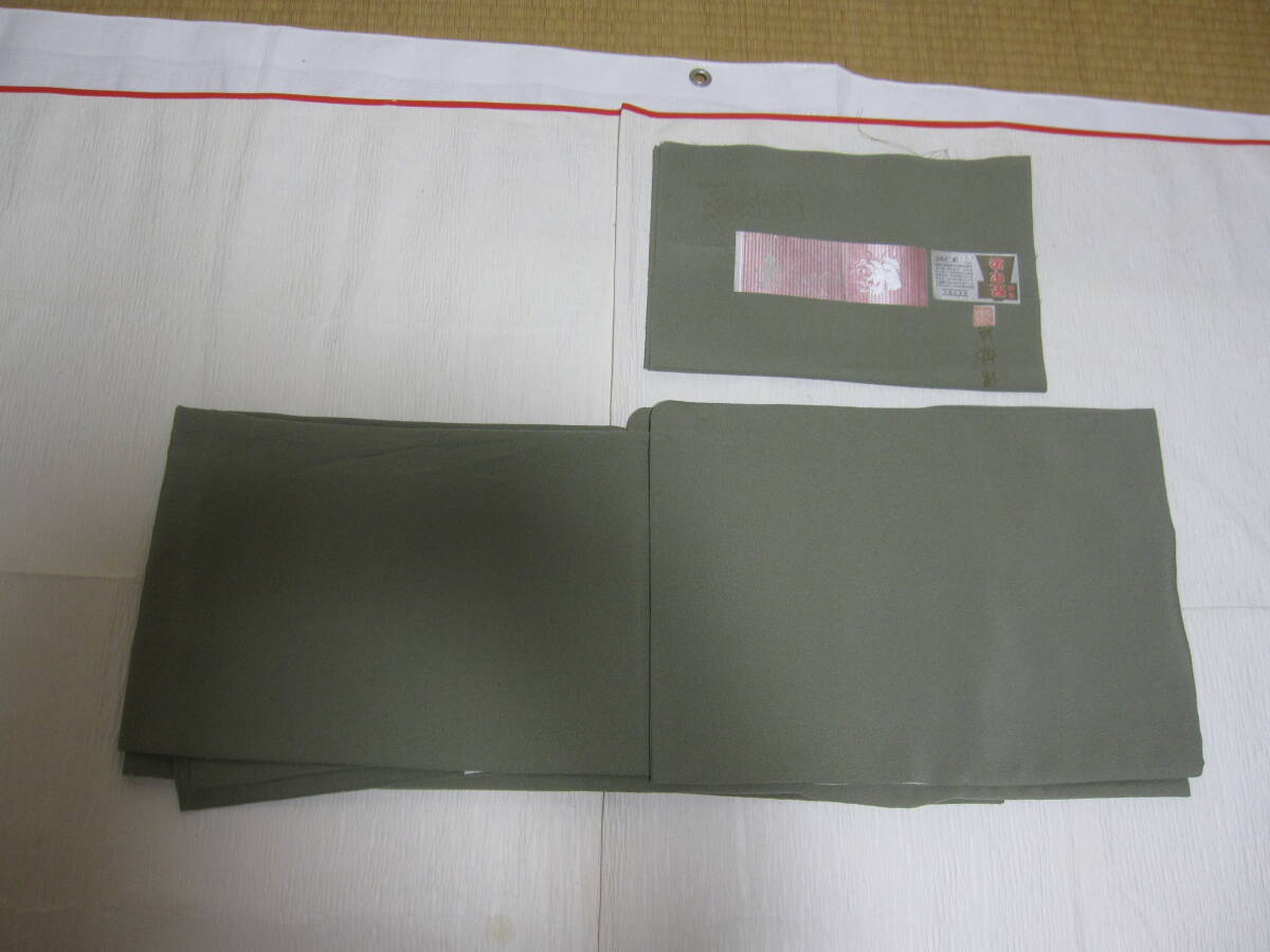 > 色無地 堅牢染(けんろうそめ)渋茶 別誂え 正絹 残布付き 背紋有五三桐染紋 裄64 身丈151 無地着物 付下げ なごや帯