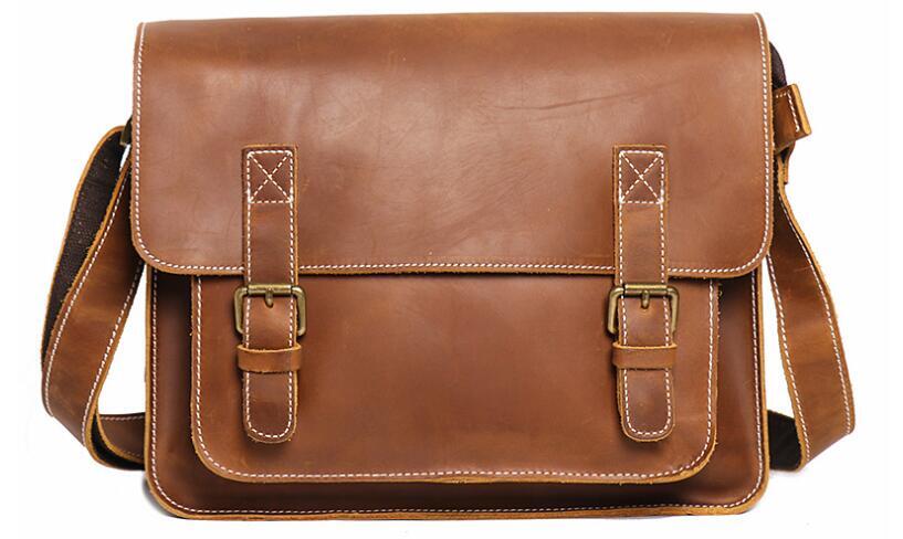 - 国内稀少*本革 レザー ショルダーバッグ 斜め掛けバッグ メッセンジャーバッグ 通勤 斜め掛けバッグ 牛革 肩掛け鞄 ブラウン
