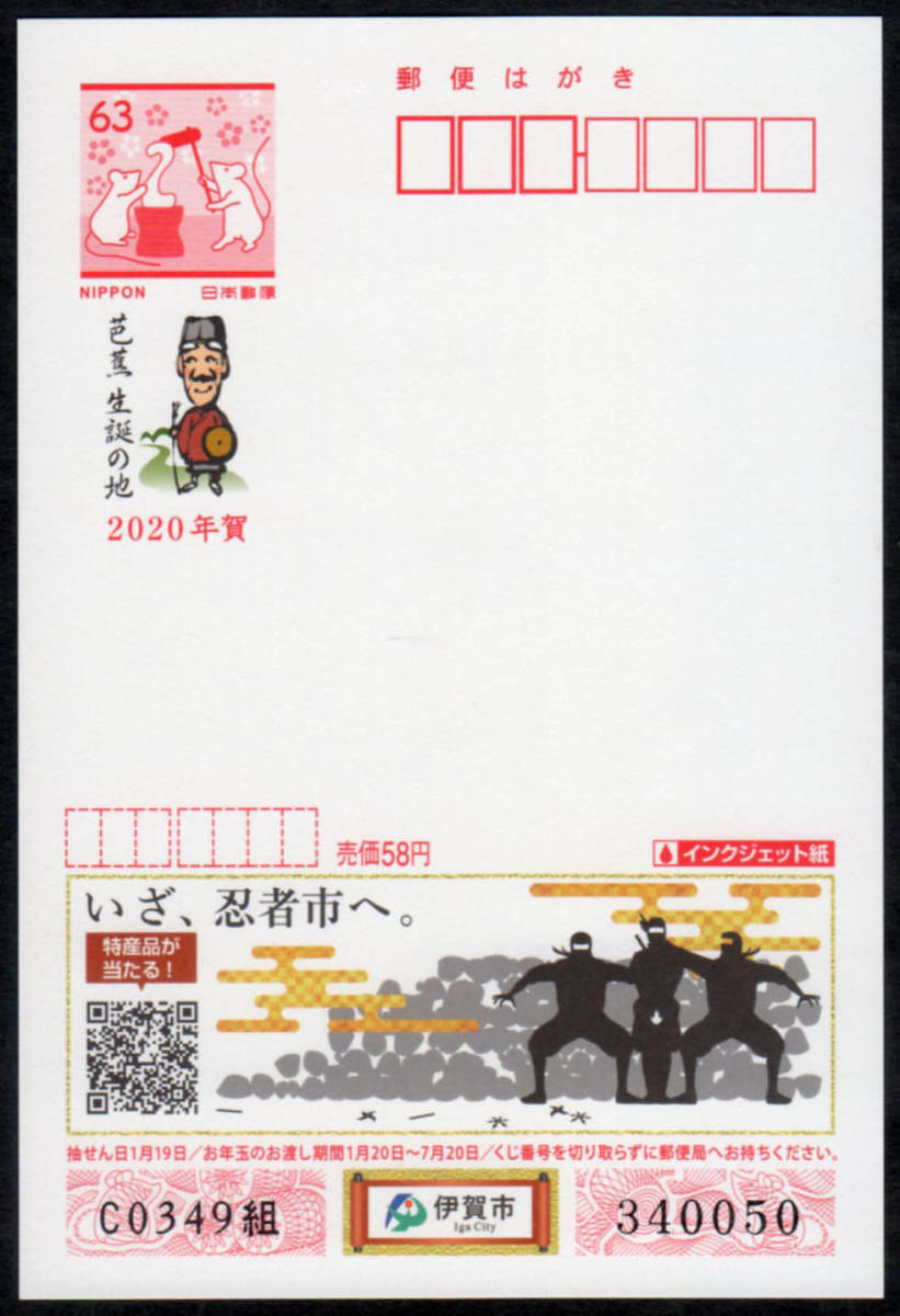 18176A8◆複数出品◆2020年用 伊賀市63円★エコー年賀はがき いざ、忍者市へ 芭蕉生誕の地 令和2年用 ネズミ拍卖