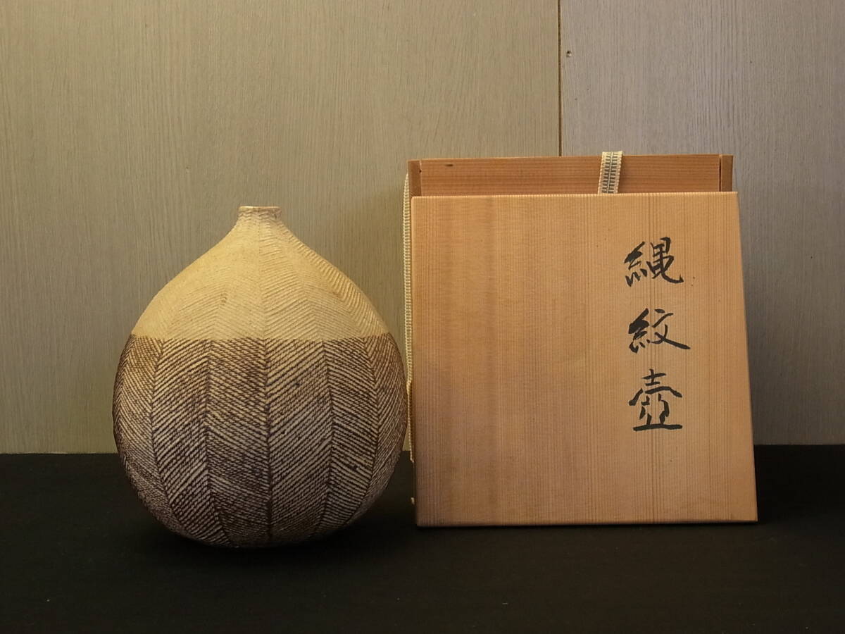 - t1589 蔵出 縄紋壺 陶治苑 剰作 在銘 共箱 陶芸 壺 陶磁器 伝統工芸 焼き物