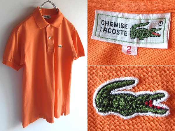 - 希少 80sビンテージ LACOSTE ラコステ ビームス別注元ネタロゴ 文字ワニ L-1212 鹿の子ポロシャツ 2 オレンジ 橙 大沢商会 ネコポス対応