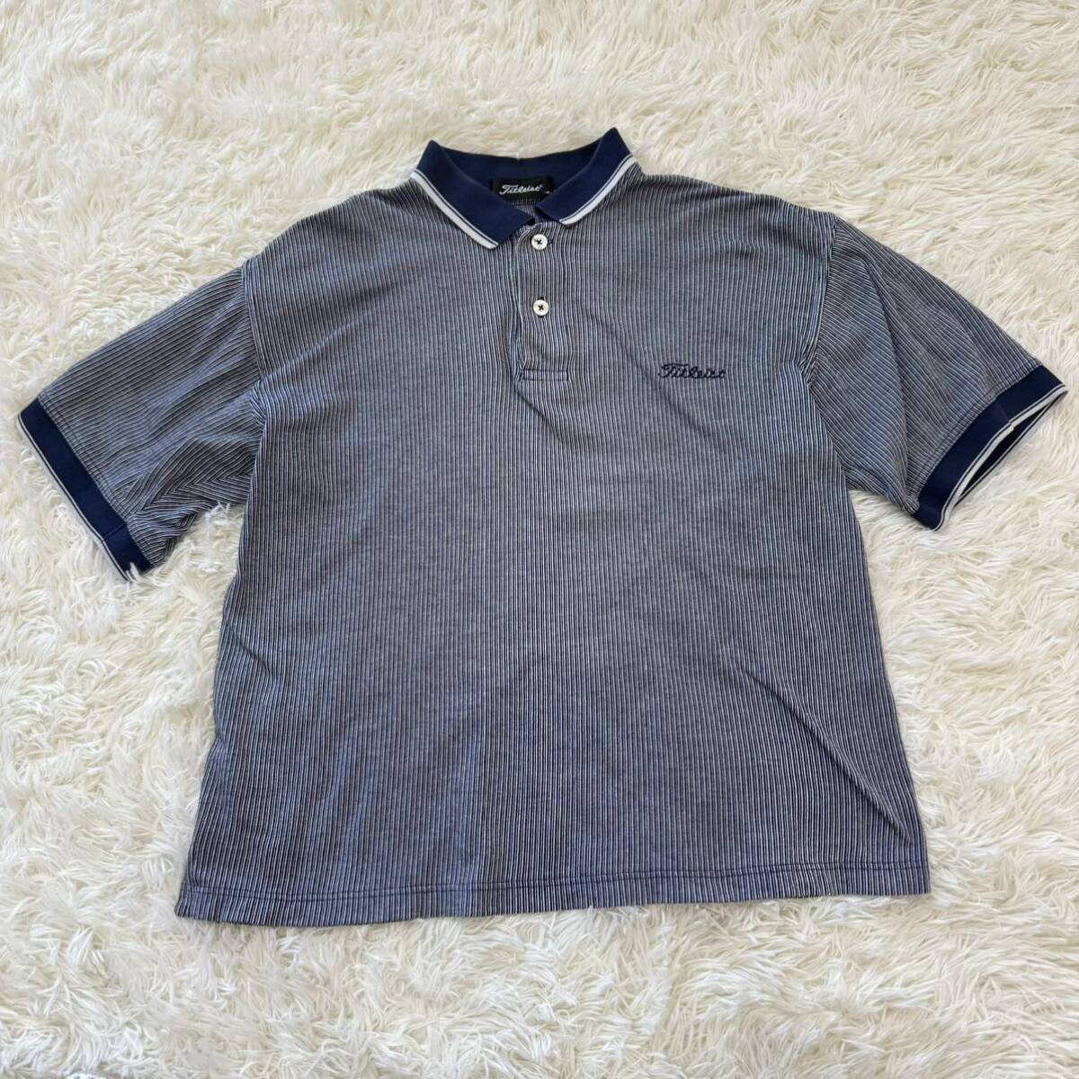 - TITLEIST タイトリスト ポロシャツ ゴルフウェア Mサイズ 半袖 ロゴ刺繍 ストライプ 半袖ポロシャツ