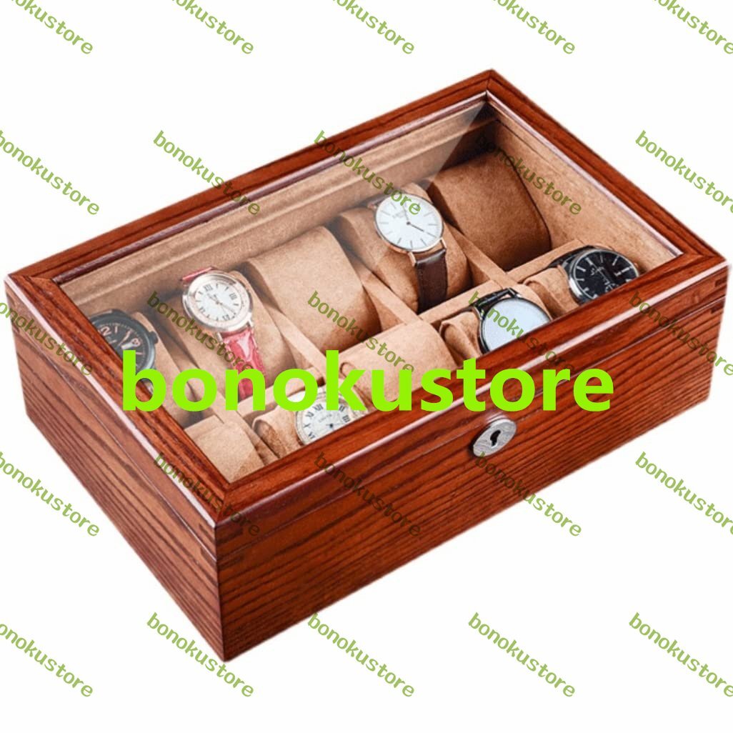 > 時計ケース 時計ロール 時計ワインダー 10スロット 時計収納ボックス 木製時計ボックス ジュエリーブレスレット ロック付き