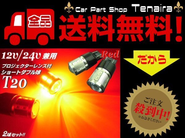 > 12V 24V 兼用 T20 ダブル球 赤 LED ショート 16LED レッド 拡散 プロジェクターレンズ ブレーキランプ テール バルブ メール便送料無料/5