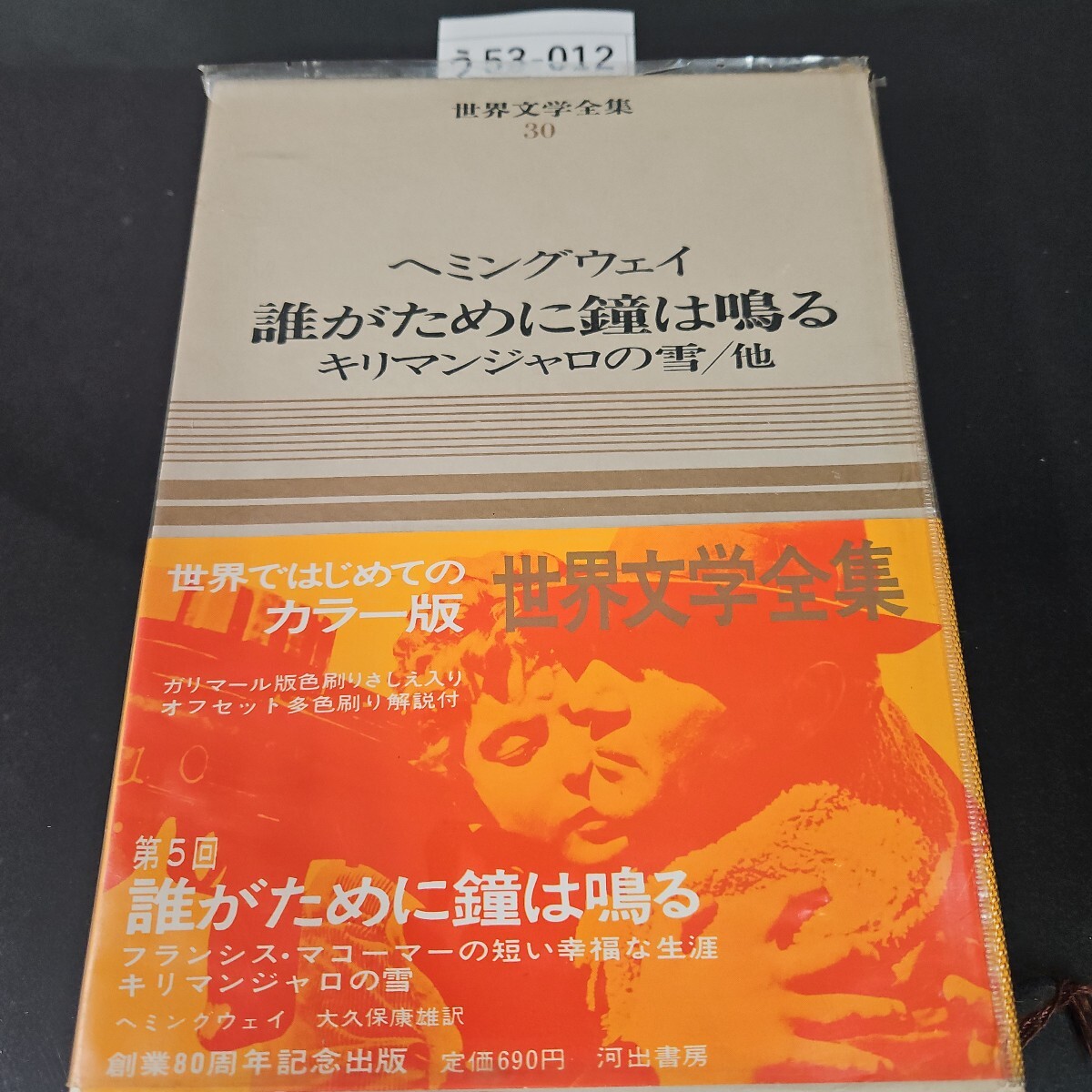 - う53-012 カラー版 世界文学全集 30 ヘミングウェイ 誰がために鐘は鳴るキリマンジャロの雪/他 河出書房新社