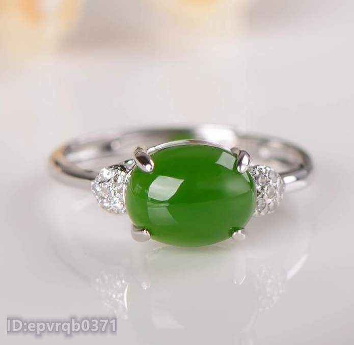 - 指輪◇レディース 高級 緑玉髄 リング 女性 アクセサリー フリーサイズ 調整可能 新品未使用