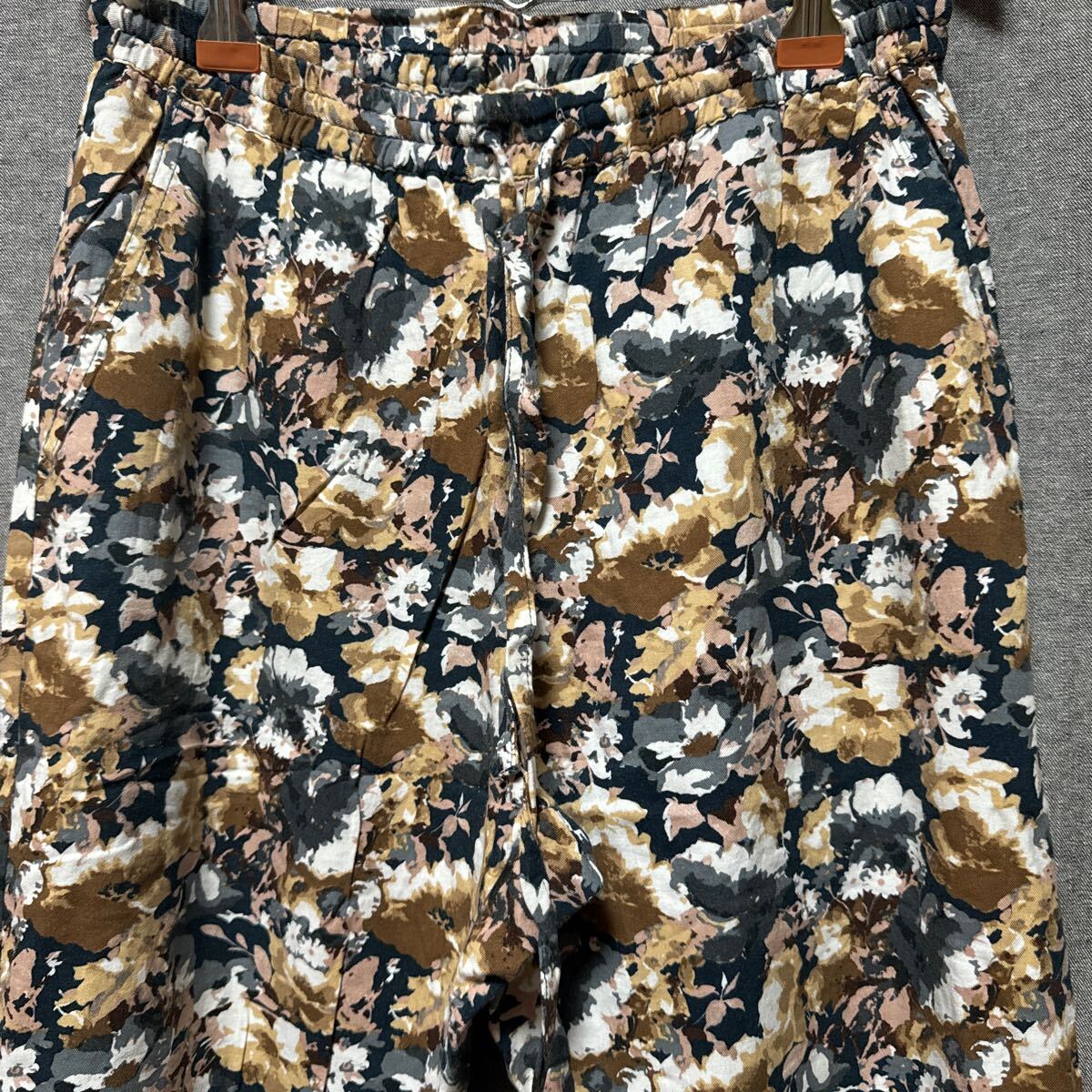 - 未使用 ニコアンド テロテロパンツ 花柄ブラウン系 さ