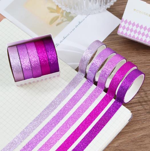 - マスキングテープ グリッター 5巻きセット 紫色 パープル キラキラ ラメ 装飾 製作 誕生日カード