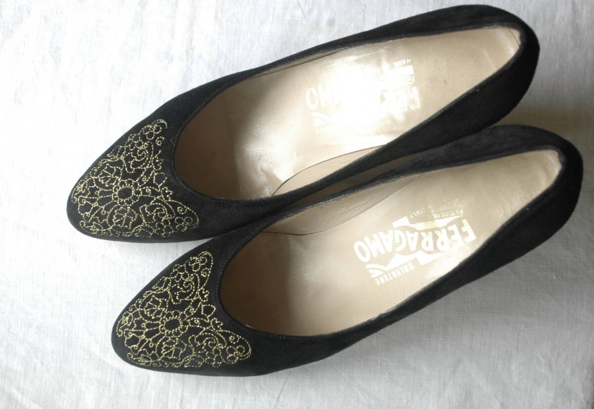 - ( 阪急フェラガモで購入 ) ブラックのスエードパンプス ※6Cサイズ
