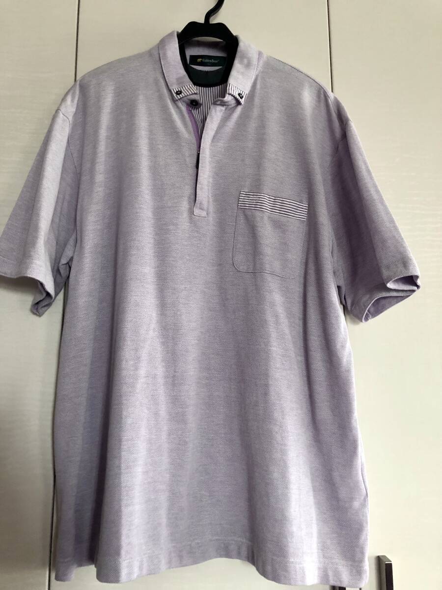 - ■ Golden Bear 半袖ポロシャツ LL ポケット付き 前ファスナー 綿70% ポリエステル30% 伸縮性有り 薄いパープル