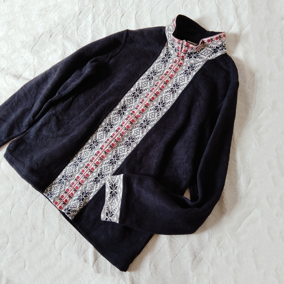 - L.L.Bean*エルエルビーン*チロリアンフリースジャケット*雪柄*ジップアップ*黒*ブラック*レディースM~L*カーディガン*ビィンテージ