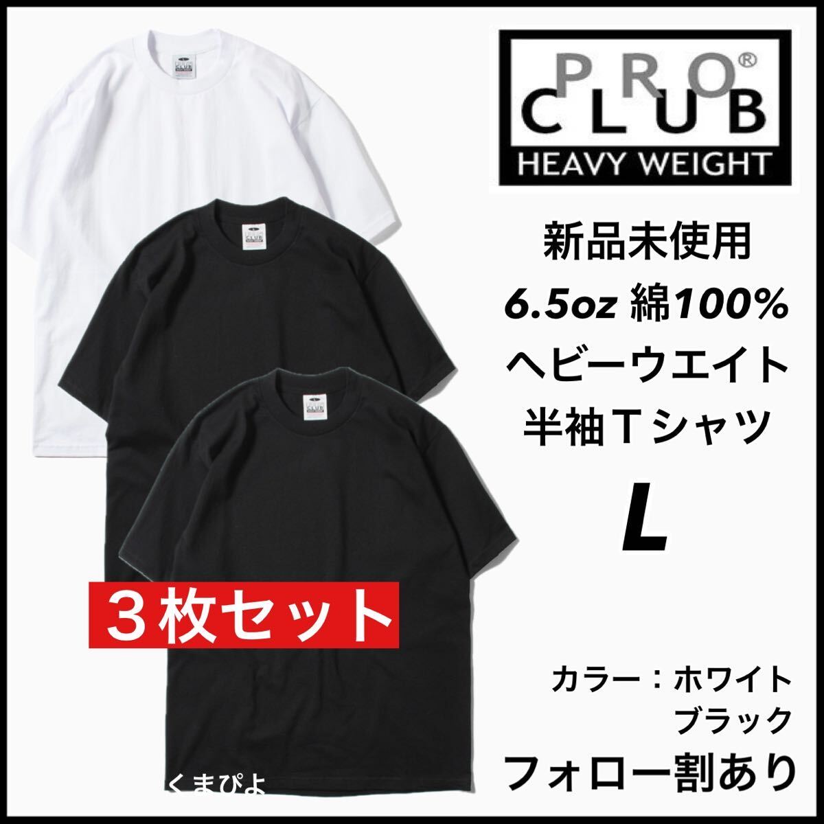 - 新品 プロクラブ 6.5oz ヘビーウエイト 無地 半袖Tシャツ 黒白3枚 Lサイズ PRO CLUB