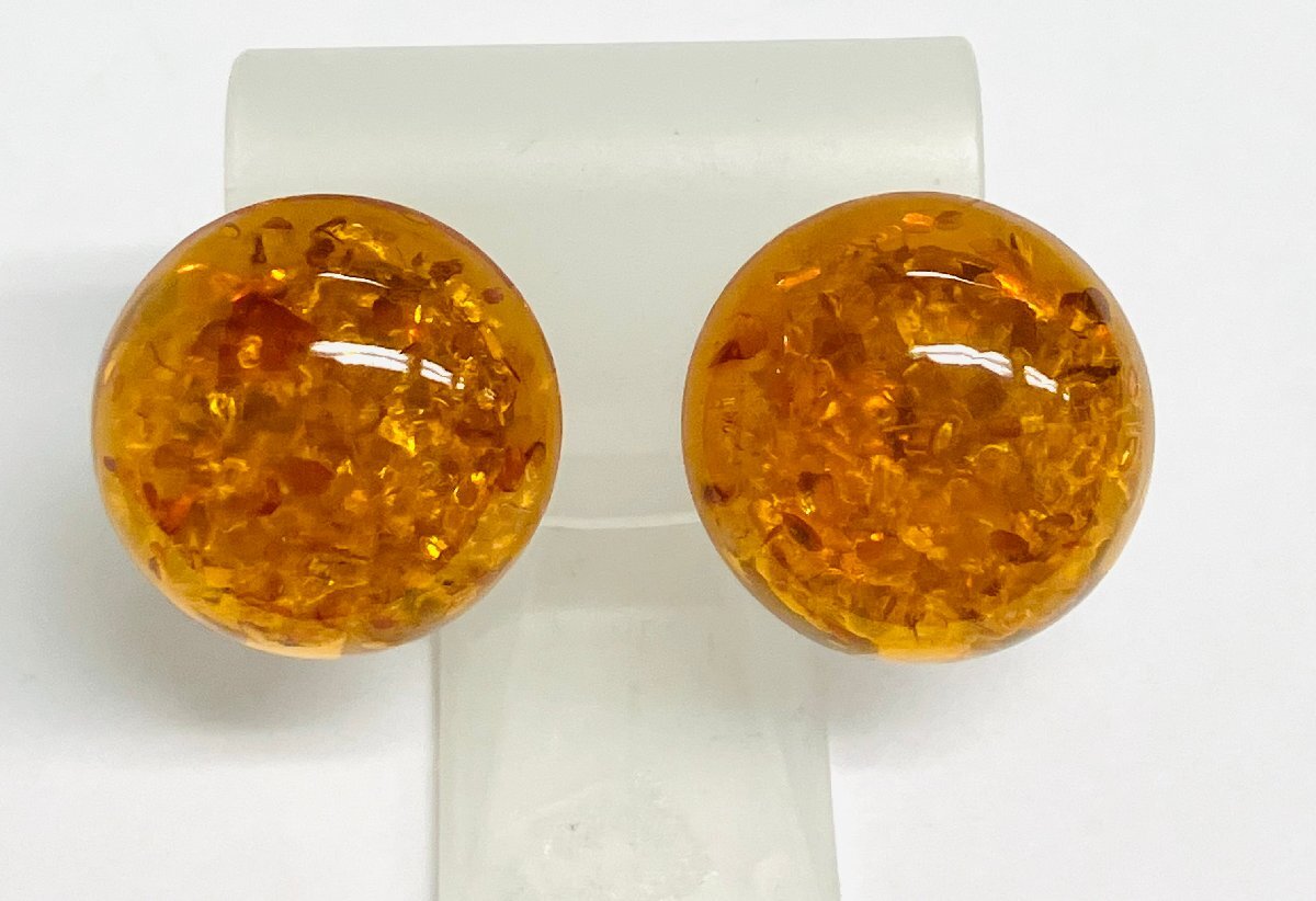 - 琥珀 コハク 円形 イヤリング ゴールドGP qoj.YZ203