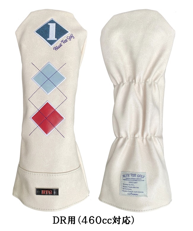 > ▲【DR-オフホワイト・ネイビー】ブルーティーゴルフ【アーガイル - Classic クラシックモデル】ドライバー用ヘッドカバー CHC-03 送料無料
