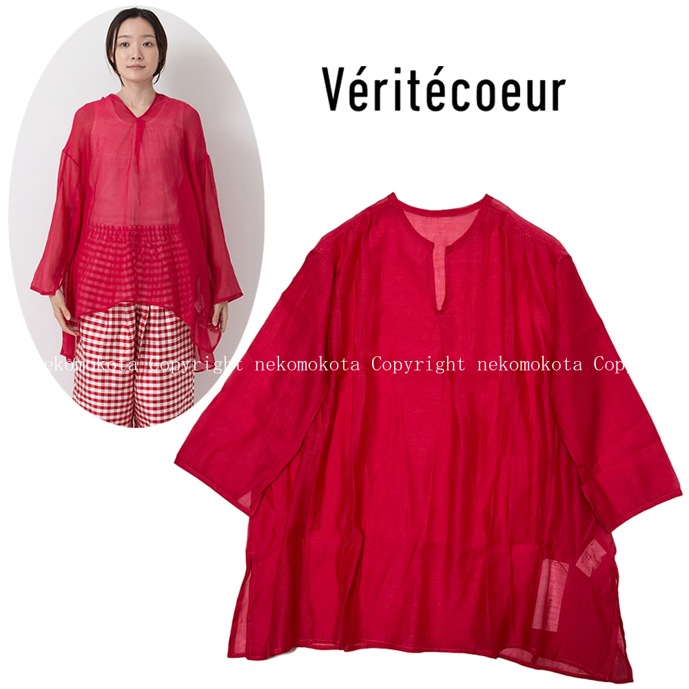 > 未使用 タグ付き ヴェリテクール ふんわりシルエット コットン シルク サイドフレアトップス ピンク シャツ ブラウス VC-2620S Veritecoeur