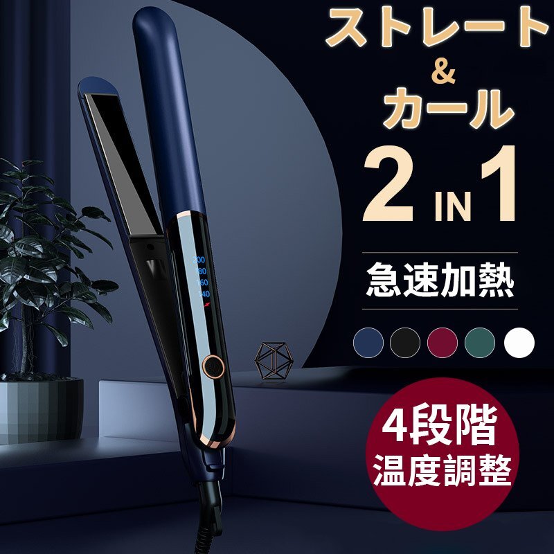 - ヘアアイロン カール ストレート ウェーブアイロン 2way 温度調整 セラミックグレーズパネル ストレートアイロン 4段階温度調整